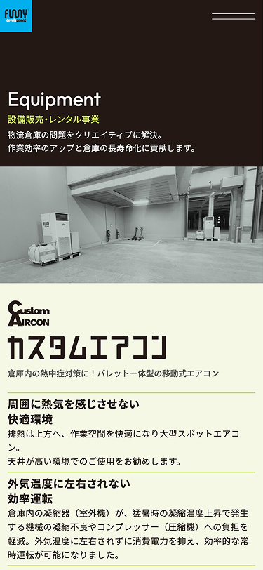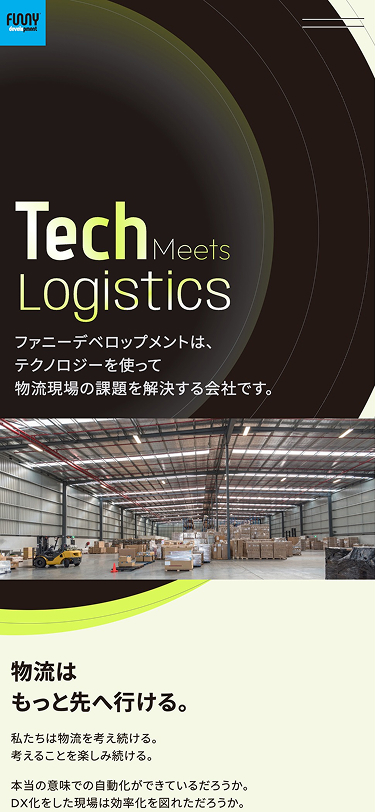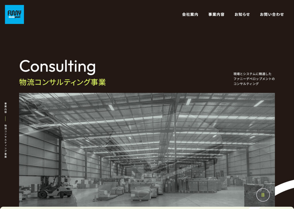 現場とシステム両方に知見のあるファニーデベロップメント様の強みです。本ホームページは、DXに取り組む中で課題を感じている物流会社の経営者やメーカーの物流担当者に向けて興味を持っていただけるように制作しました。物流業界を楽しく発展させたいという代表の想いも表現したいと考えました。