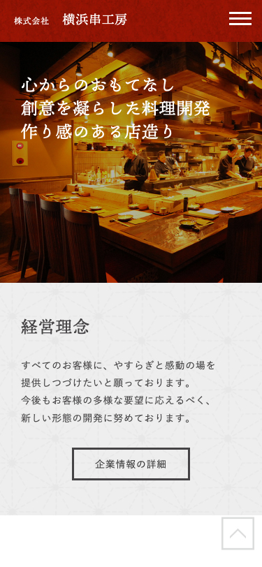 複数の飲食店を展開する企業の本部サイトとして、“おもてなしの心”と“安心して来店できる信頼感”を伝えることをテーマに制作しました。