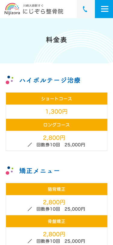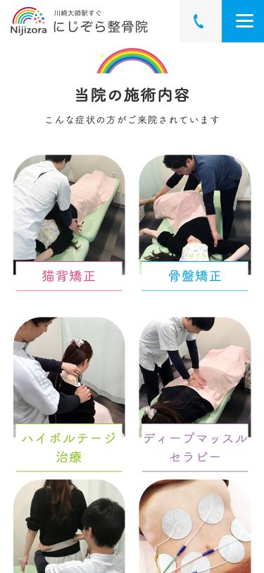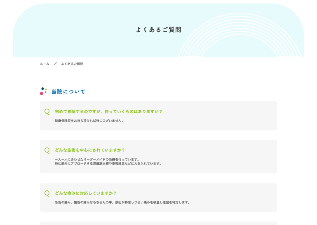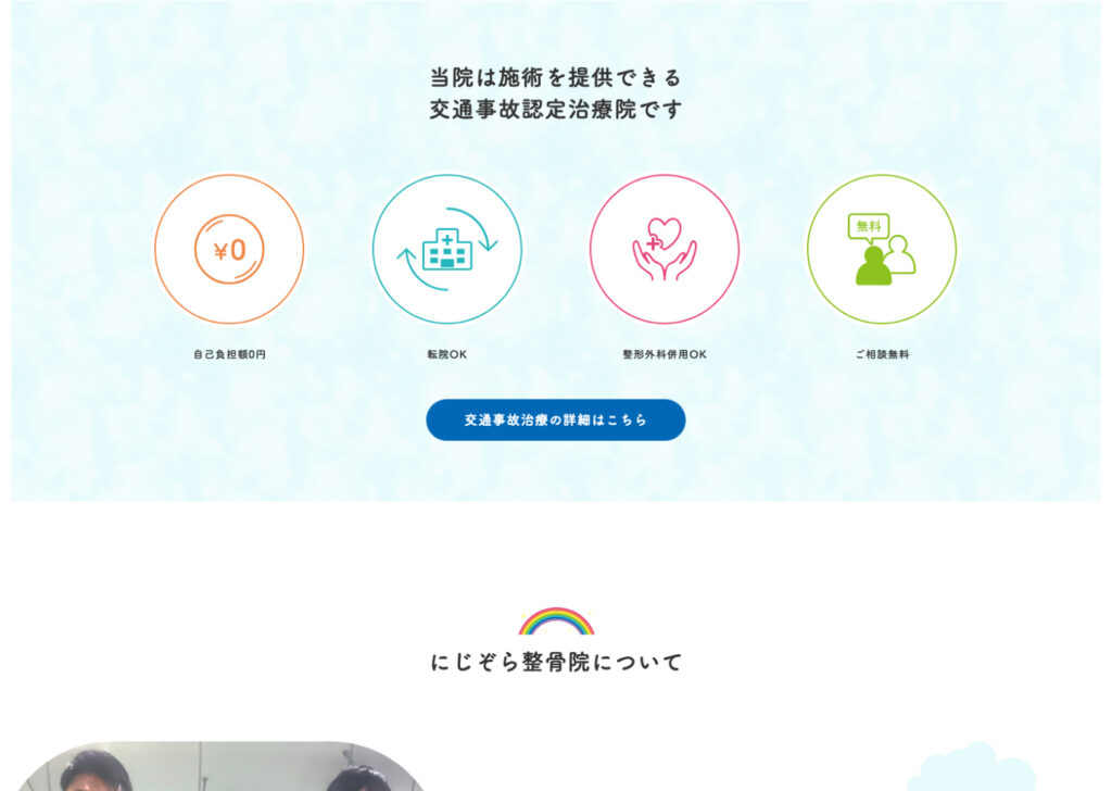 サイト全体では、随所のあしらい等にもやわらかなニュアンスを加え、幅広い年齢層の方に施術の安心感や院の温かさが伝わるよう意識しました。