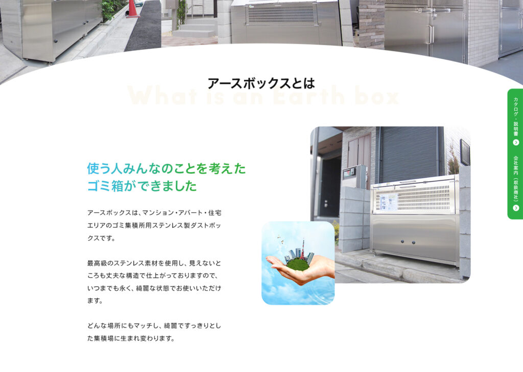 ステンレス製のゴミボックスを製造・販売されている企業のホームページを、事業の発展にあわせてリニューアルをお任せいただきました。