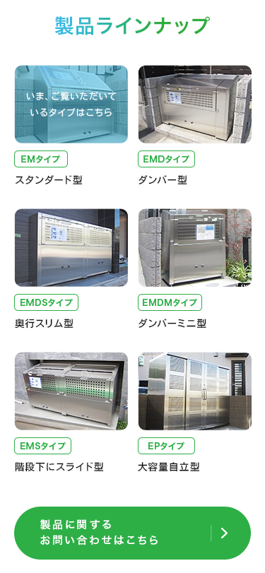 製品は、設置場所や容量に応じて多彩なラインナップがあり、それぞれの特長をお客様が比較・検討しやすいように整理。